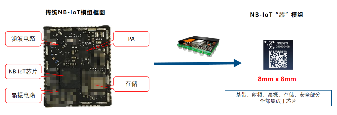 5G NB-IoT的演进趋势: 在NB-IoT芯片和模组尺寸价格做到极致低的时候。将NB-IoT模组芯片化,NB-IoT行业解决方案高度集成化,就成为了一个最主要的发展趋势,这就是所谓的NB-IoT芯片级模组和NB-IoT行业专用芯片级解决方案。